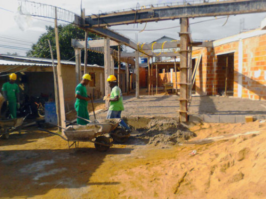 Cerca de 20 homens trabalham firme na construção da Unidade Básica de Saúde (UBS) no bairro da Penha. A obra segue dentro do cronograma normal e está em fase de tijolamento, colocação de laje e contrapiso. De todas as unidades que estão em construção, a UBS da Penha é a única que vai possuir repousos diferenciados. A UBS está localizada na Rua Rossini Quintanilha Chagas, ao lado do CSU.