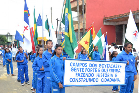 Um pelotão de jovens carregou as bandeiras de Campos, do Estado do Rio de Janeiro e de outros estados do país, deixando a mensagem de que Campos é uma cidade de gente forte e guerreira. Outro desfilou representando o petróleo, que alavancou o desenvolvimento da cidade.