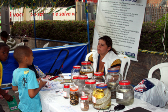 Já a equipe do núcleo de Informação Educação e Comunicação (IEC) do CCZ levou para o estande animais peçonhentos e não peçonhentos, para alertar a população sobre os venenos e, também, orientou sobre os riscos da dengue com vídeos para crianças e adultos. O ônibus do Hemocentro ficou estacionado no local durante todo o dia realizando coletas de sangue.