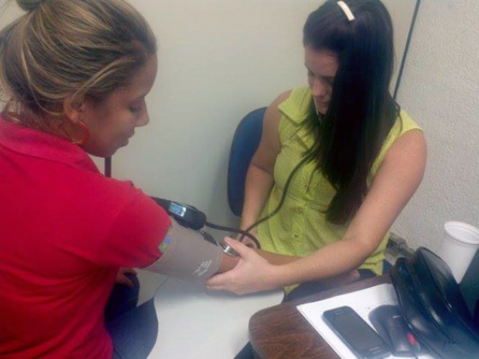 Na ocasião, as enfermeiras fizeram aferição de pressão nos colaboradores. Samila também abordou sobre os principais sintomas da hiperglicemia, que são sede, urinar em excesso e cansaço. “Já um estado de hipoglicemia dá sintomas como suores, fome, tremores e ansiedade”, explicou Samila.