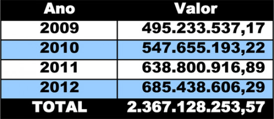 Somente no ano passado, de janeiro a dezembro, foram repassados para as folhas de pagamento dos servidores recursos na ordem de R$ 685.438.606,29. No ano anterior, a soma dos vencimentos foi igual a R$ 638.800.916,89. Em 2010, o pagamento dos servidores totalizou R$ 547.655.193,22. Em 2009, foram pagos R$ 495.233.537,17.