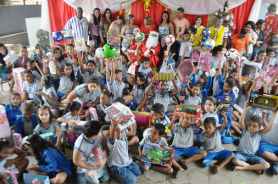 Papai Noel dos Correios entrega presentes a alunos