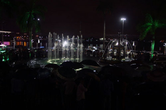 O evento contou com a Orquestra Municipal, sob a batuta do maestro Luiz Maurício Carneiro. Após apresentações de variados números musicais, na parte final a Orquestra vibrou com a movimentação das águas, num jogo de luzes, com alternações dos níveis dos esguichos de água, tudo em comando computadorizado, no subsolo, a cinco metros de profundidade.