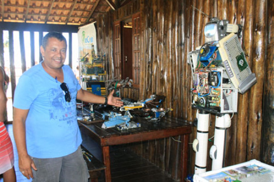 Para quem gosta de tecnologia, no estande da Secretaria Municipal de Meio Ambiente, na orla da praia do Farol de São Tomé, está acontecendo a exposição “Vem ver o que eu fiz com o seu celular”, do artista plástico Ricardo Salgado. São miniaturas de helicópteros e insetos cibernéticos, além de uma mini plataforma de petróleo e do robô batizado de “Restto”, tudo feito com materiais eletrônicos reciclados.