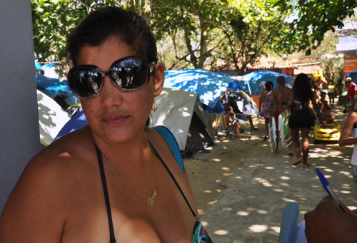Outra turista, Vânia Pinheiro, também elogia a estrutura de camping. “É a terceira vez que venho acampar aqui, no camping de Farol, e sempre trago alguém para conhecer. Hoje trouxe minha amiga Denize, que é professora e vai curtir os últimos dias de férias na praia de Campos. Aqui é legal porque tem segurança 24 horas, a entrada das barracas são vigiadas por câmeras e fica tudo aberto. Todas as barracas ficam na sombra e o ambiente é muito familiar, com todo mundo respeitando todo mundo. Sempre que puder vou estar por aqui, porque custa apenas R$ 8 por pessoa e sai muito mais em conta do que nos hotéis e pousadas”, considerou Vânia.