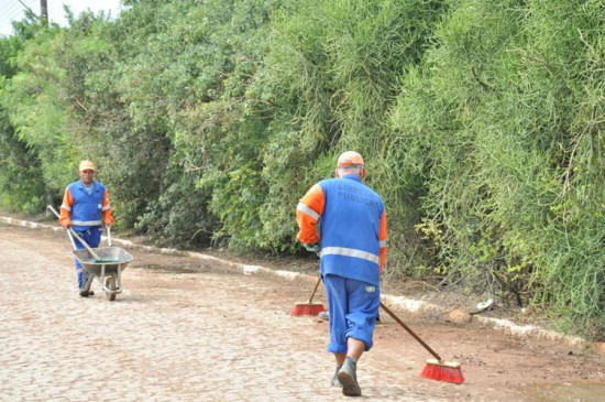 Equipe de limpeza trabalha nas ruas de Poço Gordo