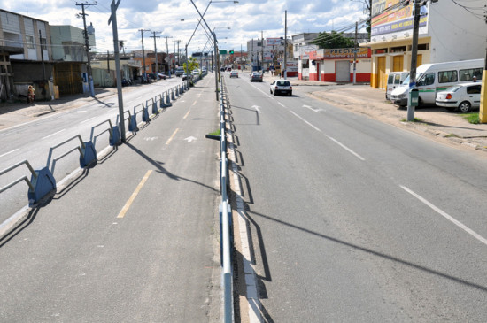 alvenaria nas calçadas e a iluminação na avenida. A sinalização vertical