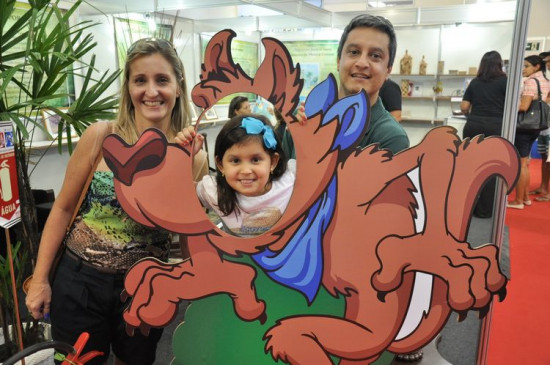 O casal estava com sua filha, a pequena Maria Eduarda, que conferiu o estande do homenageado e ainda tirou foto com o lobo, com o qual ficou encantada.