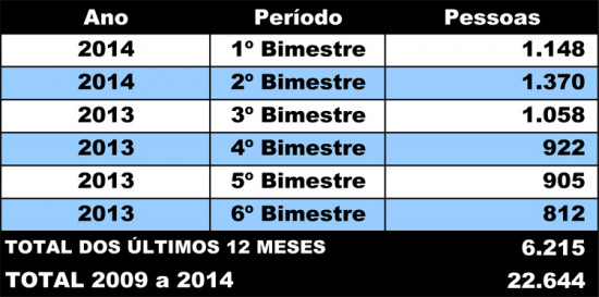 O mês de março registrou o maior número de contratos, 760. Em abril, foram 610, contra 576 em fevereiro e 572 em janeiro. Fevereiro foi o mês em que mais empresas se cadastraram no Balcão de Empregos, 38. No mesmo período, foi enviado às empresas pedido de 17.905 currículos e mais 4.953 cadastrados no Balcão de Empregos. De janeiro a abril de 2014, o órgão emitiu 924 carteiras de trabalho e realizou 465 atendimentos socioassistencial.