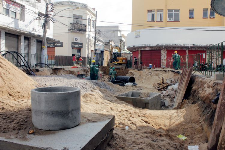 Equipes que trabalham nas obras de revitalização do Centro Histórico de Campos estão atuando em quatro frentes de trabalho. As obras estão transformando a região central da cidade com toda a infraestrutura prevista no projeto, que vai garantir maior mobilidade à população.