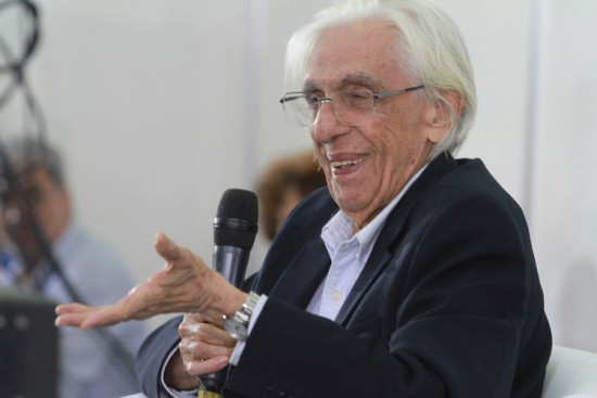 “A arte existe porque a vida não basta”, com esta frase Ferreira Gullar explica o sentido da arte. Ele continua: “A função da arte é inventar a realidade. A arte é a visão das coisas que não conhecemos. A arte é alguma coisa que não existia antes. A vida é inventada. O mundo é inexplicável. Quase tudo que existe vem do acaso. Mas não é só a acaso. É o acaso e a necessidade. Numa folha em branco tudo é possível. Quando escrevemos a primeira palavra, diminui a probabilidade. Quando começamos de um jeito, vem a palavra necessária”, diz Ferreira Gullar, que ministrou nesta terça-feira (20) uma palestra no Espaço Café Literário da 8ª Bienal do Livro de Campos no Centro de Eventos Populares Osório Peixoto (Cepop) mediada pela professora Analice Martins. Com uma platéia repleta de jovens, o poeta expôs seus pensamentos e contou um pouco de sua vida e obra.