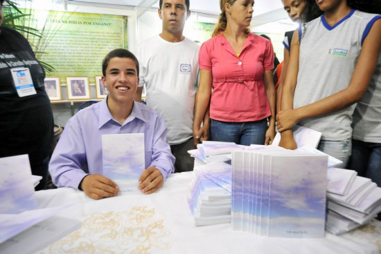 Depois de vencer o concurso “Cientista por um dia”, organizado pela agência espacial americana, Nasa, Valmique Bento da Silva Oliveira, 14 anos, lançou nesta sexta-feira (23), no Espaço do Autor, na 8ª Bienal do Livro, “Festa no Céu”. O livro, com cerca de 45 poesias do escritor campista, nasceu após a participação dele no concurso.