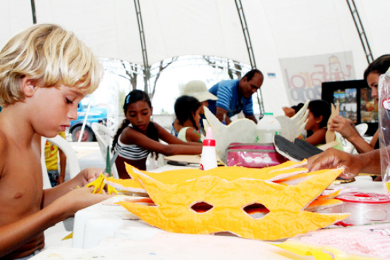 II etapa da oficina de máscaras e adereços na Tenda Cultural