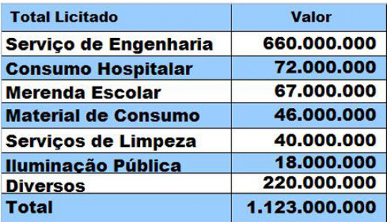 De janeiro de 2009 a junho deste ano, a prefeitura realizou um total de mil licitações, injetando recursos na ordem de R$ 1.123.000.000,00 na economia do município. O maior investimento foi registrado em serviços de engenharia, totalizando R$ 660 milhões.