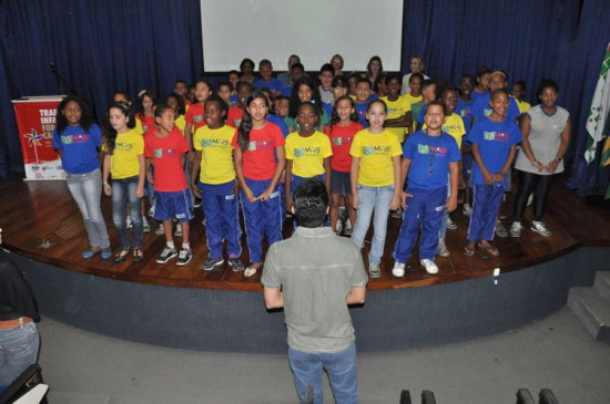 Alunos da Escola Municipal Ferroviário Jacy da Silva Barbeto, que integram o programa Mais Educação, do governo federal, em parceria com a prefeitura, cantaram o Hino de Campos e uma música, na abertura do I Seminário Municipal de Erradicação do Trabalho Infantil, nesta sexta-feira (27), no campus Campos-Centro do Instituto Federal Fluminense (IFF).