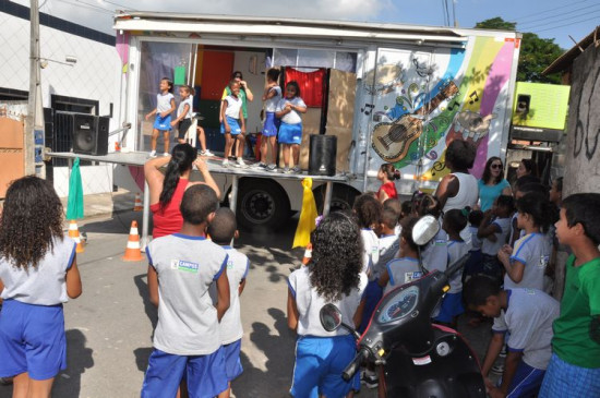 O Viajando com as Artes leva atividades de arte e cultura às unidades escolares da rede municipal de ensino, por meio de um caminhão itinerante equipado com brinquedos, fantoches e tudo o que é preciso para fazer a festa dos alunos e demais integrantes das escolas.