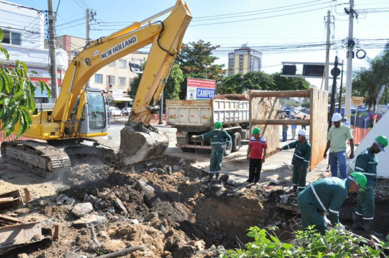 Prosseguem em ritmo acelerado as obras de drenagem que a Prefeitura, através da Secretaria de Obras, Urbanismo e Infraestrutura, está realizando na Avenida José Alves de Azevedo, nas imediações do Mercado Municipal. As obras têm como objetivo a instalação do sistema de drenagem que vai resolver os problemas de alagamentos constantes na descida da Ponte Leonel Brizola, em dias de chuvas fortes.