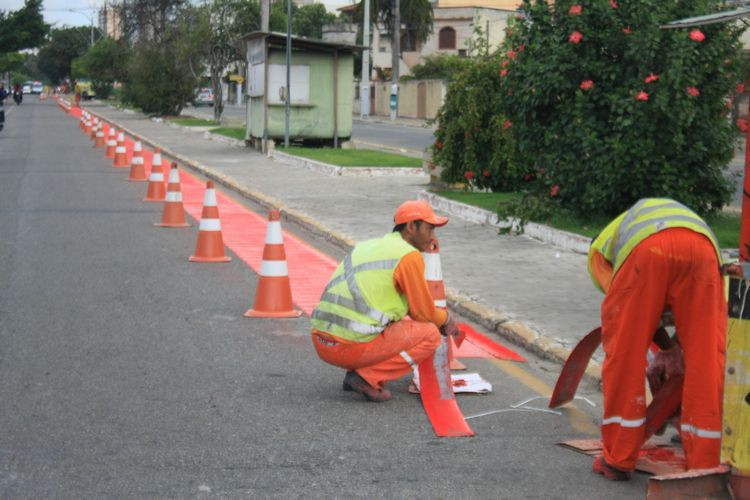 Funcionários do IMTT trabalhavam nesta quarta-feira (17) na pintura e na sinalização da nova ciclofaixa, na Avenida Tancredo Neves, que já está parcialmente aberta aos ciclistas. A nova ciclofaixa vai percorrer ainda, a Avenida Zuza Mota, até o Hospital Geral de Guarus.
