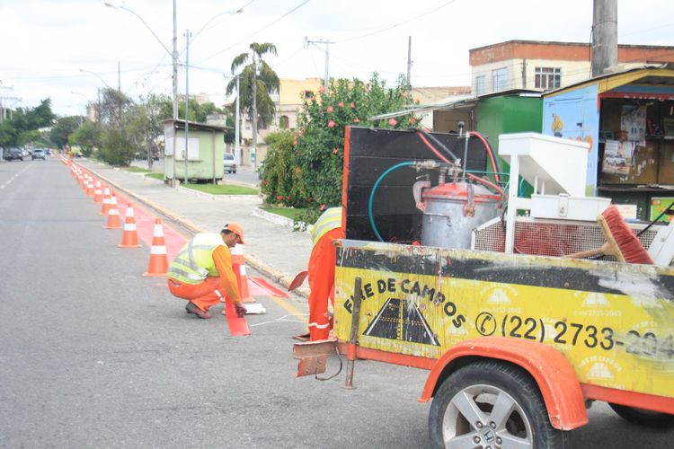 Mais uma ciclofaixa começou a ser instalada nesta quinta-feia (17), na Avenida Tancredo Neves, antiga Salo Brand, em Guarus, que vai permitir que os ciclistas possam chegar através dela à Avenida José Carlos Pereira Pinto, aonde a ciclovia vai se integrar ao trajeto.