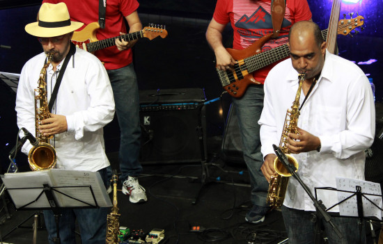 Daltinho Freire (sax), Renato Arpoador (bateria), Márcio Leal (piano), André Rangel (baixo) e Tavo Duque (guitarra), abriram o show ao som de “Influência do Jazz”, música de destaque no repertório Banda Bossa Jazz, que comemorou 16 anos, recentemente.