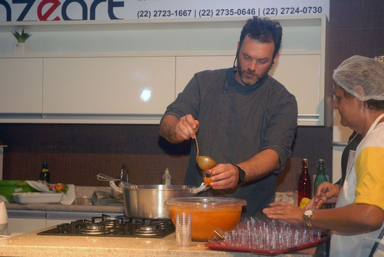 Gazpacho, arancini e bolinho de PF foram os pratos preparados pelo chef de cozinha Jimmy McManis, na noite desta sexta-feira (13), na abertura da segunda semana do II Festival de Petiscos, no Farol de São Tomé. Integrante do programa “Mais Você”, da TV Globo, o chef explicou o modo de fazer cada receita.