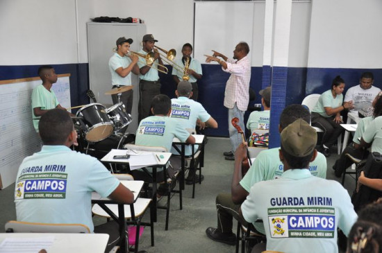 Vinte e cinco alunos da Guarda Mirim, da Fundação Municipal da Infância e da Juventude (FMIJ), estão aprendendo música de segunda a sexta-feira, em dois turnos. As aulas teóricas e práticas são ministradas na sede da própria instituição. De acordo com o coordenador do curso, maestro Afonso Gualberto, os alunos aprendem a ler partitura e a tocar instrumentos, como bateria, saxofone, flauta, trompete, violão, teclado e outros.