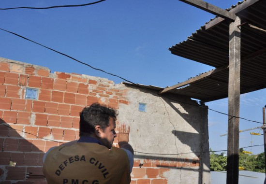 Equipe da Defesa Civil também esteve em duas ocorrências no Parque Nova Brasília. Uma por queda de árvore na Rua Alan Kardec e outra na Rua Reinaldo Batista, onde o telhado, madeiramento e parte de uma parede do terceiro andar, de uma obra irregular, caíram sobre uma casa do vizinho, no térreo. O proprietário do imóvel foi orientado a demolir a parte superior, tendo em vista que uma das paredes no lado oposto incorre em risco de desabamento, tendo em vista não ter colunas estruturais suficientes e a única existente está fora do prumo, conforme constatou técnicos de Edificações da Defesa Civil, que orientaram o proprietário a fazer a demolição do que restou do terceiro pavimento em construção em situação irregular.