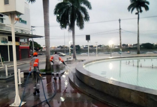 Limpeza de praças é feita com água de reuso
