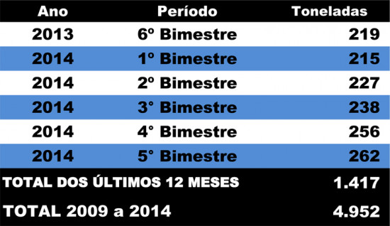 De 2009 a outubro deste ano foram recolhidas 4.952 toneladas de papéis, plásticos, papelão, garrafas pet, latinhas, entre outros recicláveis. Nos últimos 12 meses, a coleta seletiva atingiu 1.417 toneladas. Este ano foi implantado o novo programa, separando o lixo seco (reciclável) do úmido (não reciclável).