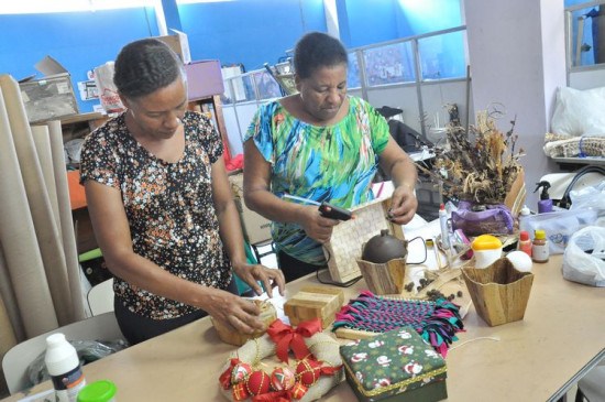Alunos dos cursos do Programa Inclusão Produtiva e Economia Solidária, da Secretaria da Família e Assistência Social, estão concluindo alguns módulos e as aulas já estão voltadas para os temas natalinos. No curso de Cartonagem e Artesanato com Fibra de Bananeira, as alunas estão ganhando uma renda extra com a venda dos produtos de decoração.