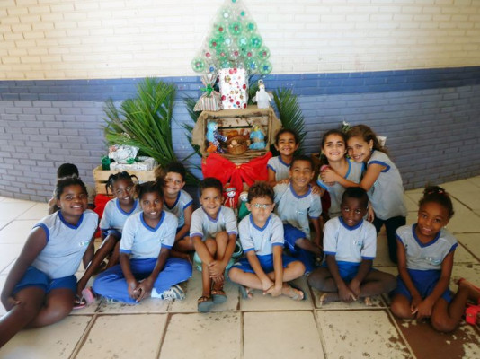 O clima de Natal invadiu a Escola Municipal Etelvira Martins Medeiros, no Km 13, em Travessão, neste mês de dezembro. Um grupo de alunos, do Programa Mais Educação (PME) na escola, montou um presépio no hall da unidade, compondo o cenário do nascimento de Jesus Cristo, utilizando materiais recicláveis e muita criatividade.