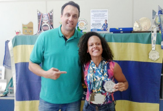 Esta semana, a lutadora esteve na sede da Fundação Municipal de Esportes, para apresentar a medalha conquistada ao presidente da entidade, André Ferreira (Pampa). Daiane é aluna do Mestre Wendel Alexander Dell, da equipe Nova União.