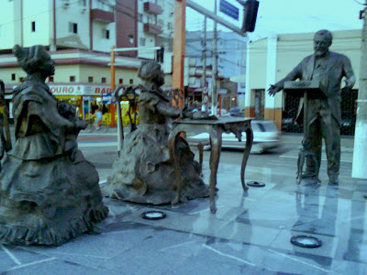 O conjunto foi instalado em 2003, por sugestão dos poetas Antonio Roberto Fernandes e Vilmar Ferreira Rangel e do escritor Jorge Renato Pereira Pinto, da Academia Campista de Letras, junto à rampa de acessibilidade do Palácio (obra do arquiteto Francisco Leal, atualmente passando por uma reforma) e levada para a Praça Fatia de Queijo, onde se encontra próximo do canhão da Revolução de 30.