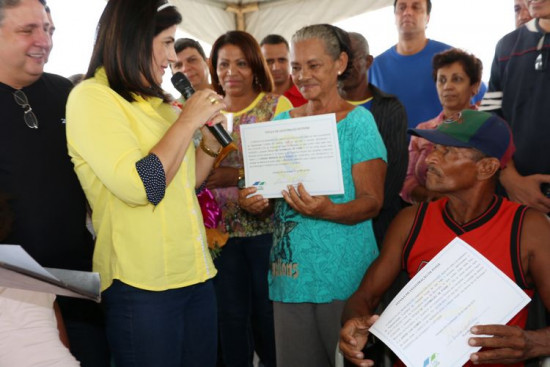 Prefeita faz entrega simbólica de título de posse e anuncia praça para o Condomínio Recanto dos Campeões