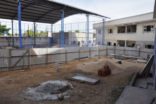 Obras em andamento na escola de Travessão