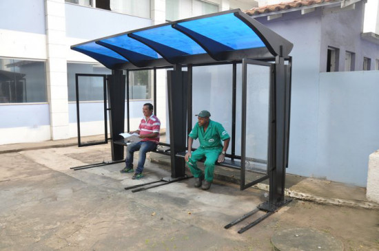 Os novos abrigos são nas cores preto e azul e possuem estrutura de ferro e metalon, material mais resistente à ação do tempo, com cobertura em policarbonato. “Os novos abrigos tem oito assentos com divisórias para maior aproveitamento do espaço”, informa Edilson.