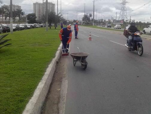 Rotatória da BR-101 recebe equipe de limpeza pública