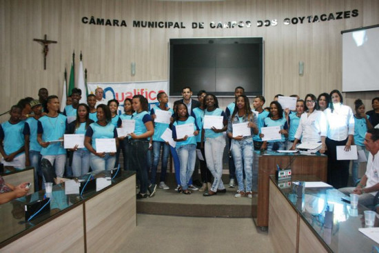 Clima de emoção na formatura dos 117 alunos dos cursos do Qualifica Jovem, da Fundação Municipal da Infância e da Juventude, que este ano, fechou também parceria com o Projeto Jovem Alerta, do Centro de Integração Empresa-Escola (CIEE). Pais e responsáveis elogiaram o programa da Prefeitura de Campos, que vem qualificando centenas de jovens, a partir dos 14 anos até 18 incompletos, para o mercado de trabalho em áreas com mais oferta de empregos.