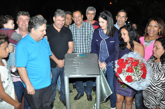 A Prefeita Rosinha Garotinho, acompanhada do secretário de Governo, Anthony Garotinho, inaugurou na noite deste sábado (15) a Praça Maria Geisa Messias Genásio, localizada no Condomínio Recanto Solares Campistas, no Morar Feliz do Parque Esplanada. O espaço, que antes era um terreno baldio, ganhou piso, paisagismo, playground, mesas com jogos, campo de futebol de areia, pista de caminhada, acessibilidade e iluminação. Esta é a nona obra entregue pela prefeita Rosinha este ano. Os vereadores Mauro Silva e Álvaro César estiveram presentes, assim como secretários municipais.