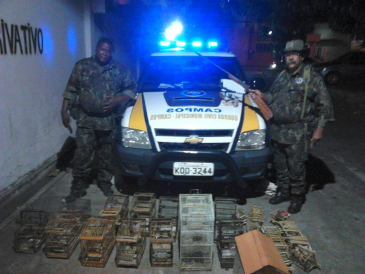 Vinte e sete pássaros silvestres, além de material de caça, foram apreendidos neste final de semana, em Campos, pelo Grupamento Ambiental (GAM), ligado à Guarda Civil Municipal. As apreensões ocorreram em três ações, sendo uma no sábado (15) e duas neste domingo (16). Segundo o comandante do GAM, o biólogo Sávio Tatagiba, todas foram fruto de denúncias anônimas e estão previstas na Lei de Crimes Ambientais. A maior apreensão aconteceu no final da tarde de domingo, onde foram recuperados 16 aves e material de caça, como espingarda, munição e alçapões na estrada Campos-São Fidélis.