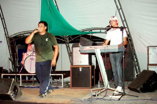 A banda, formada por um vocalista e um tecladista, colocou o público presente na tenda para dançar. No repertório, músicas de sucesso, como ‘Você não vale nada’, da banda Calcinha Preta, que se apresentará neste sábado (20), às 22 h, na Aldeia do Sol.