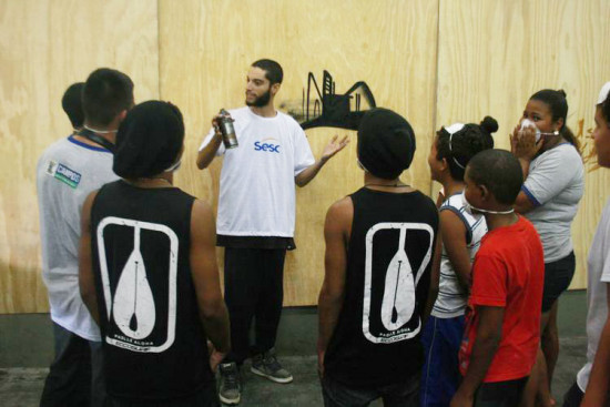 As oficinas acontecem no contraturno escolar, três vezes por semana, durante quatro horas por dia, uma iniciativa do Sesc nas unidades escolares parceiras, com o objetivo de contribuir para a melhoria de vida da população. São desenvolvidas quatro oficinas, duas antes e duas após a culminância. Desde a semana passada, os alunos estão aprendendo técnicas de grafite e bioartesanato, até completar o total de 24 horas em cada curso. A partir da próxima semana, eles vão iniciar a oficina para DJ e bordado misto. Cada turma abre vagas para até 30 alunos.