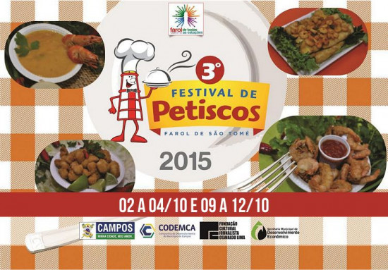 Continua, neste fim de semana, o 3° Festival de Petiscos do Farol de São Tomé, que se encerra na segunda-feira (12). Nos três dias, a partir das 10h, o público pode se deliciar com os 30 pratos à base de peixes e frutos do mar comercializados a preço único de R$ 15 por 10 restaurantes participantes.