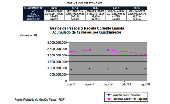 Com a queda brusca de receita, o município de Campos já está comprometendo quase 50% dos recursos que recebe com a folha de pagamento dos servidores municipais. Hoje, a folha de pagamento alcança 47,27% da receita corrente líquida, percentual que está próximo do limite de alerta pela Lei de Responsabilidade Fiscal que é de 48,6%. Em abril de 2014, 39,47% da receita eram comprometidos com o funcionalismo. A queda de receita tem sido provocada pela crise econômica, agravada pela queda do preço do barril do petróleo, que reflete diretamente na queda de arrecadação do município.