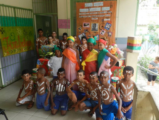 A Escola Municipal Helena Machado de Oliveira, em Santa Cruz, realizou nesta segunda-feira (30) a exposição sobre Africanidade. O material foi confeccionado pelos alunos e trouxe muitas informações, como a valorização da descendência dos alunos, apresentação das princesas negras, dos jovens do grupo bate-latas, dos alunos de mestre peixinho com suas apresentações de capoeira, com a participação de todos em uma palestra, e ainda com direito a um banquete da gastronomia negra: feijoada com arroz e farofa.