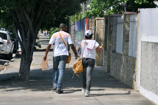 em bairros e distritos, visitando casas, terrenos baldios, obras