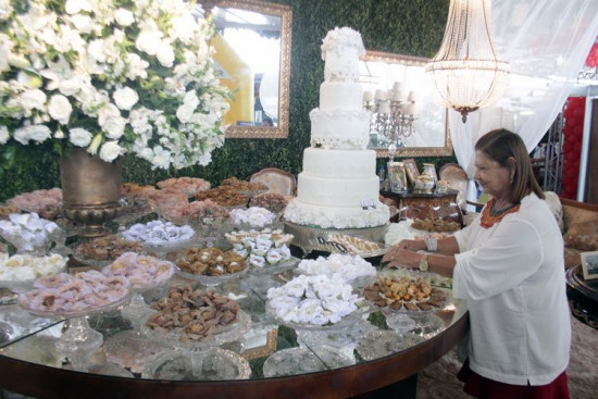 Umas das expositoras é Alcinéia Finque Decorações & Eventos. Ela conta que uma novidade que trouxe foi o da mesa para casamento na forma redonda. “Essa mesa redonda é uma novidade este ano. Além disso, as noivas estão buscando decorações com flores brancas e arranjos que ficam em harmonia com toda a mesa que é espelhada e muito sofisticada” disse Alcinéia.
