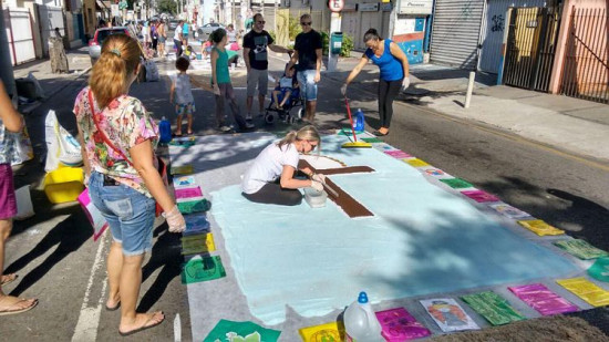 Profissionais da educação confeccionam tapetes de Corpus Christi