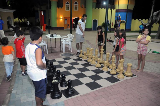 A Cidade da Criança Zilda Arns, em parceria com a Academia de Xadrez de Campos, sedia neste sábado (28), o 1º Campeonato Municipal Estudantil de Xadrez Rápido. Às 10h, haverá a participação especial campeão estadual de xadrez, Eduardo da Matta, que estará disputando, simultaneamente, contra 15 atletas, que terão 15 minutos de reflexão para cada jogador. A abertura oficial do campeonato será a partir das 13h. O evento contará com cerca de 80 atletas de cinco categorias: pré-mirim (sub 10), mirim (sub 12), infantil (sub 14), cadete (sub 16) e juvenil (sub 18). Um xadrez gigante está chamando a atenção da garotada, desde quarta-feira (25).