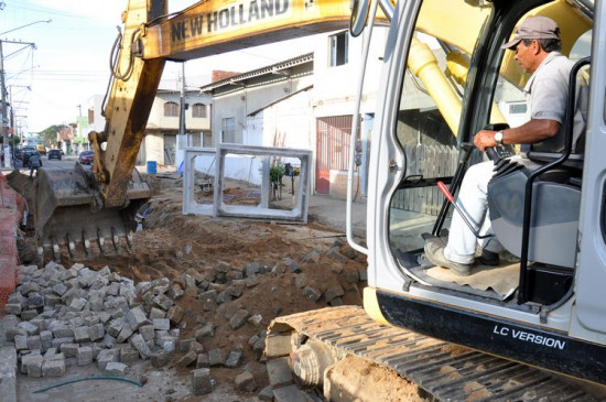 Também está sendo realizada a pavimentação com paralelo e asfalto em todo o corredor de ônibus do bairro, além da construção de calçada com acessibilidade em todas as ruas.